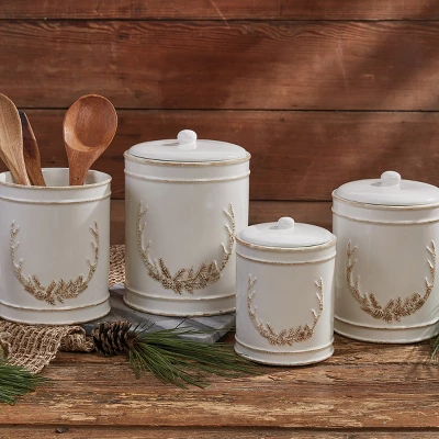 These nature inspired canisters feature an antler motif done with pinecone details. Paying homage to the rustic inspired movement, these canister sets are the perfect look for any home. Made of high quality durable stoneware and featuring silicone seals for freshness.