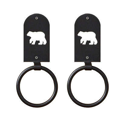 - This wildlife inspired set of 2 Black Bear Ring Hooks are suitable for your master or guest bathrooms. They give you a place to hang your towels and accessories to keep your home clean and clutter-free!
