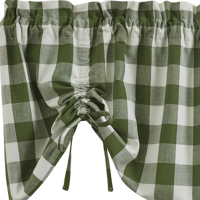 Bring any small window to life with our rustically stylish Wicklow valance. A subtle green and cream, buffalo print will seamlessly blend with your existing decor, making it an easy addition to your space. Whether you hang it in your kitchen, bathroom or use it to dress up the curtain panels in your living room, you’ll love the transitional style it adds to your home. It can be used as a standalone accent piece or paired with the coordinating tier pairs for a timeless farmhouse look!