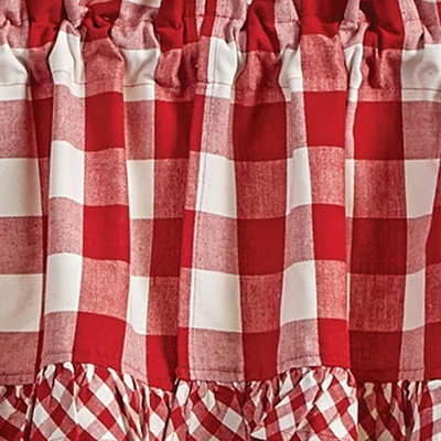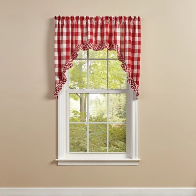 Top off your window with a comforting touch of a classic red and cream check pattern. The design captures the beauty of a timeless look in your home with this window swag that can be easily paired with tiers. Add this piece to your space to introduce a fresh look without having to redecorate the entire room.