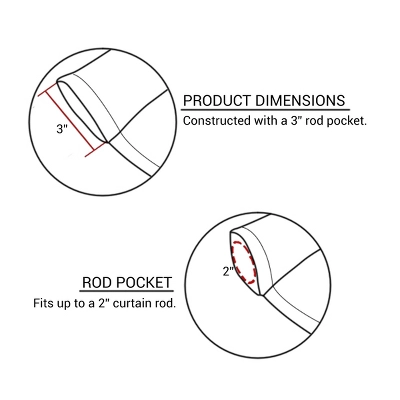 - Features a 3″ rod pocket with no header for a cleaner look that works with standard curtain rods or decorative drapery rods.