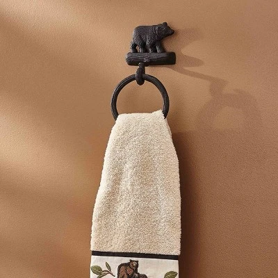 - This wildlife inspired set of 2 Cast Black Bear Ring Hooks are suitable for your master or guest bathrooms. They give you a place to hang your towels and accessories to keep your home clean and clutter-free!