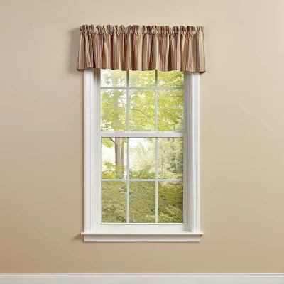 Create a warm and bold statement for your window with this Beige based valance with rustic red and black stripe. You will quickly fall in love with the classic appeal this window treatment adds to your home decor with its timeless design. The natural ruffling of the fabric at the top paired with its simple check will create a pretty, country look without having to redecorate an entire room.
