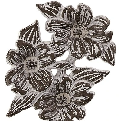 - Materials: Made from high quality cast metal, featuring three beautiful dogwood flowers with a branch-like textured hook in a beautiful distressed white over brown finish. We provide all of the hardware needed for mounting this hook, and it is quickly and easily installed.