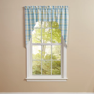 Update any room in the house with this beautiful plaid swag pair that delicately frames a window and softens the light to create a comfortable, cozy ambiance. Combines sky blue and bright yellow hues with a traditional plaid pattern to produce a comfy area in a living room, dining area, bedroom and more spaces. This subtle spring swag window treatment adds a classic country farmhouse appeal to your seasonal wall decor with its timeless design. The natural ruffling of the fabric at the top paired with its simple plaid design will create a stylish look without having to redecorate an entire room.