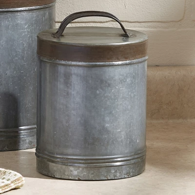 Combine functionality with style delivered by these kitchen storage canisters. This organizer tabletop set features three galvanized metal canisters that are each food safe. Great for keeping your countertops organized and neat while also providing the perfect touch of rustic farmhouse chicness to your kitchen space. This practical storage essential works well for stowing sugar, coffee, flour and more.