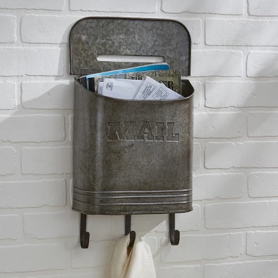 This vintage style mailbox can be used outdoors for your incoming mail, or indoors for your outgoing mail. The galvanized finish blends well with many home decor trends and the 3 hooks offer you a way to accent it with hanging seasonal items or something practical. A perfect addition a farmhouse or country setting.