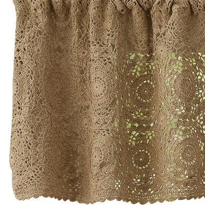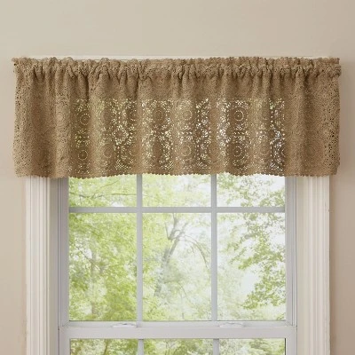 Top off your window with a comforting touch of a classic lace. The texture of this item captures the beauty of a timeless look in your home with this beige lace window accent. Add this piece to your space to introduce a fresh look without having to redecorate the entire room.