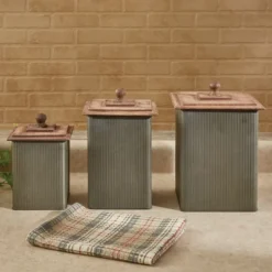 These metal, food safe canisters are a perfect fit for more antique inspired decor. Create a found and collected space with these unique pieces. Each canister features silicone gaskets on the lids for an airtight fit.