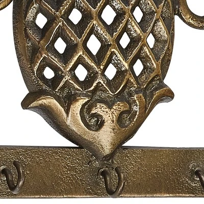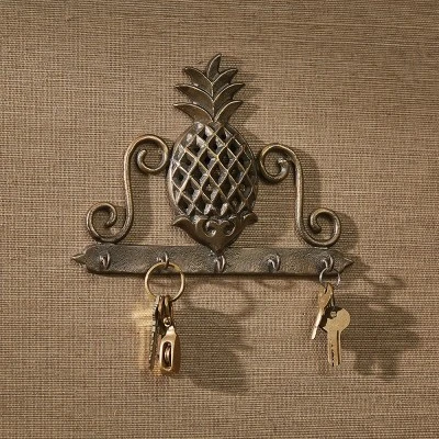 The pineapple is an enduring motif that represents a welcoming symbol for the home. This antique brass key hook features a beautiful pineapple and scroll design and provides an attractive solution for your storage needs. There are five small hooks that are perfect for house keys, car keys or even jewelry pieces. This decorative wall organizer will easily coordinate well with many home decor trends like chic, modern contemporary, farmhouse and more.
