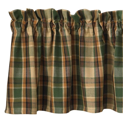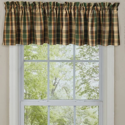 Gorgeous wall addition to any lodge or cabin inspired decor! This beautiful window treatment features a classic plaid pattern in green, beige, and orange shades for a colorful accessory to use throughout the year and seasons. This valance creates a warm and bold statement for your window, and you will quickly fall in love with the classic appeal this window treatment adds to your home decor with its timeless design
