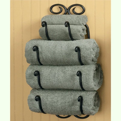 - Both beautiful and functional, this scrolled wall mount bath towel holder is perfect your bath decor