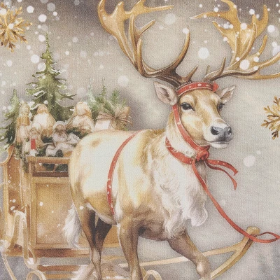 Embrace the magical spirit of the holiday season with this festive cloth table runner! The intricately printed design features a reindeer pulling a sled in a magical snowglobe-inspired scene, accented by various winter greenery and snow elements. The whimsical winter pattern adds interest and dimension, perfect for introducing a festive outdoorsy touch to holiday farmhouse table decor and seasonal Christmas dining room decoration. Offers a beautiful tabletop backdrop to a dinner setting while celebrating the magic of the winter season! Simply place the festive dinner mat down the middle of a table setting for a quick and aesthetic centerpiece display.