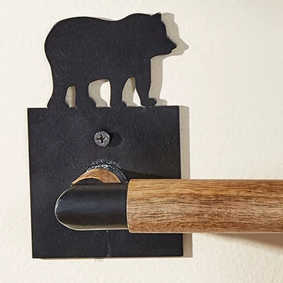 - Materials: Made from durable high quality metal and a natural wood, this 16 inch Wild Woods Black Bear Towel Bar will hold up for years to come. Featuring a matte black metal, with an adorable black bear silhouette cut out on each of the base plates.