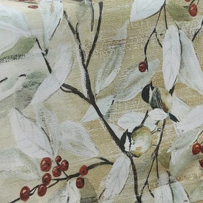 Bring a calm and wintery scene to your farmhouse holiday dinner table setting with this rustic table runner featuring a printed nature design. The intricately designed print has a rustic beige ground with snow-covered branches paired by a pair of chickadee birds and red winter berries, creating a serene atmosphere to enhance seasonal meal settings and holiday dinner gatherings. Crafted from 100% premium cotton material that will provide a protective barrier to a tabletop surface from potential spills or messes created during everyday use. Functional and stylish, this tabletop accent is perfect to enhance the visual appeal of any Christmas dining room decor during both casual and formal dinners.