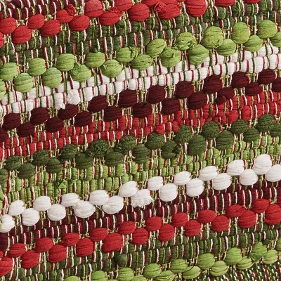 Elevate your table arrangement with our Wintergreen chindi table runner. Its beautifully woven green, red, and white hues make it the perfect accessory for your holiday table. This charming table runner will add texture and serve as the ideal statement piece. It will subtly transform any environment for the holiday season and can remain versatile throughout the year.