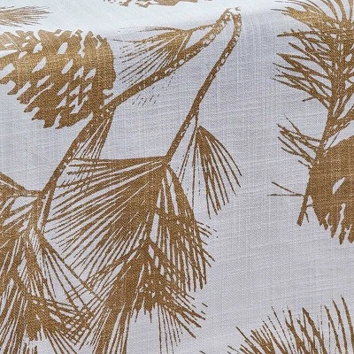 A chic table runner that adds a beautiful holiday charm and festive hues to a winter table setting. This glamorous tabletop statement features a printed pinecone and fir tree design in a shimmery gold finish to contrast against the plain white ground. Protect your dining table surface while also adding a stylish Christmas accent with this durable rectangular cloth made of a 100% premium, soft cotton. Add complementary seasonal patterns and vibrant hues to winter home decor with the rest of the elegant Patricia Heaton Home Collection.