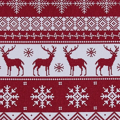 Create a cozy Christmas table arrangement with timeless charm from this beautifully crafted holiday placemat set of four. The staple holiday sweater design effortlessly combines a fun pattern including reindeers, snowflakes, and various other patterns in a festive color palette of red and white. Offers a festive tabletop addition to welcome in seasonal winter table decor or Christmas dining room decoration. Establishes a decorative statement to remember as a seasonal winter dinner table centerpiece display or a holiday tabletop backdrop. Constructed of a high-quality cotton material that effortlessly combines aesthetic appeal with functionality by offering an absorbent protective surface that will help block potential scuffs or spillages from leaving lasting impacts on your tabletop surface. Style this seasonal tabletop accessory with more complementary holiday home decor from the rest of the Patricia Heaton Home collection.